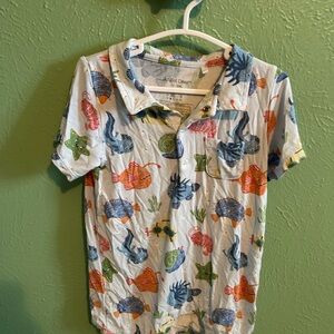Casual short sleeve shirt with vibrant sea life design. Features playful fish and sea creatures. Ideal for relaxed outings.