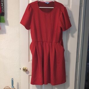 Chic red dress with short sleeves. Features a textured heart pattern.❤️ Ideal for versatile styling.