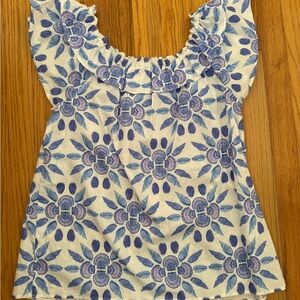 Hill House Home Augustine Off Shoulder Top Blue Shell Mosaic Size S 100% cotton