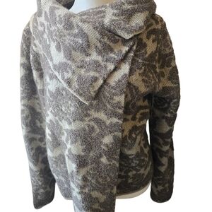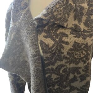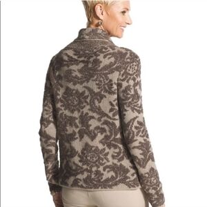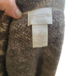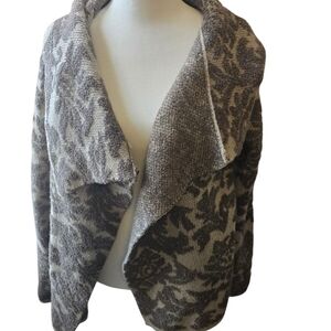 Chico's Women Ryder Cardigan Size 2 / L Brown Paisley Metallic Cowl Wrap Neck