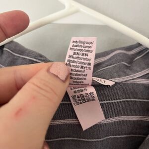 Gently preowned condition. Size extra small. Pink fabric buttons and front pocket.