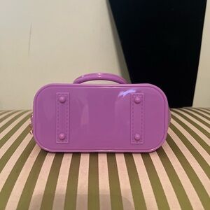 Chic and stylish purple mini handbag charms/crossbody perfect for any occasion. Add a pop of color to your outfit with this elegant accessory. You can see the size comparison in the photos. It comes with a crossbody chain! This is adorable. Perfect for night out or for your mini me daughter!