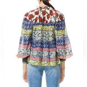 Alice and Olivia Marlyn Tie-Neck Button-Down Tiered Blouse