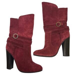 Diane von Furstenberg Wine Red Maroon Suede Leather Wrapped Heeled Boots 8.5 M