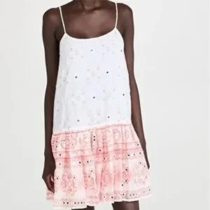 Juliet Dunn Nomad Embroidered Mirrored Cotton Mini Dress White Coral Boho 6/8