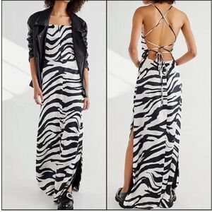 Free People Abby Dress Silky Open Back Maxi Sz 6 NEW White Black Event