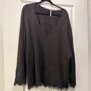 Chic charcoal sweater with a unique texture. Ideal for layering.
