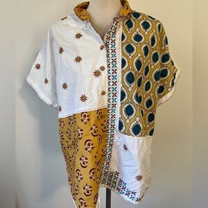 Coldwater Creek Women’s Large Embroidered Cotton Button Front Top Boho EUC India