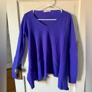 Elegant V-neck sweater in 100% cashmere. Super Soft and comfortable. Perfect for layering. Fits more like a medium with the flowy waist. In great condition