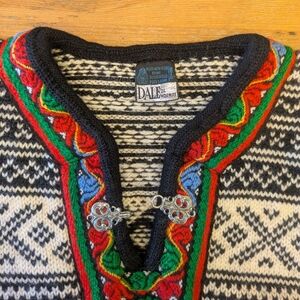 Dale of Norway Black and White Sweater with Red and Green Accents