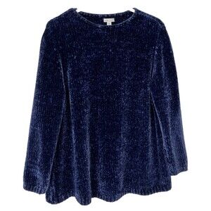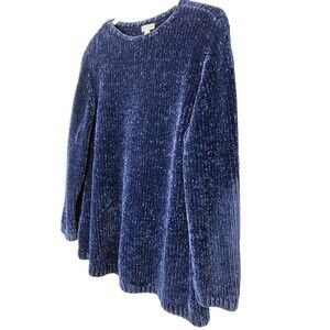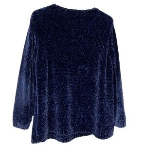 J. Jill Chenille Super Soft Dark Blue Knit Sweater Size Large Petite