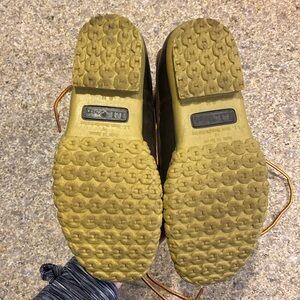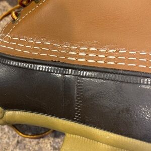 L. L. Bean Boots 8” Tan Brown 6M Code BM. Waterproof Bottoms Duck Boots These are in Good Used Condition and should have lots of life left in them. L.L. Bean Boots 8” Made With Full Grain Leather and Rubber lowers/ bottoms. They are Tan and Brown. Women’s Bean Size 6 Medium Width. I believe the Item number is 212880 but I could be reading it wrong. Since they aren’t new and have been used there may be imperfections and signs of wear. The rubber lowers are waterproof. Bean Boots have a unique fit and they say that they are made to accommodate a thick sock. I include a photo of their suggested sizing. Their recommendation for sizing is not a guarantee for fit but is a general guide. I personally am a regular shoe size of 7.5 and feel that this L.L. Bean size 6 is a bit too short for me with a lightweight sock and that’s why I’m selling them. Everyone’s feet are different so you may feel differently about how they fit. Measurements are rough approximate measurements.