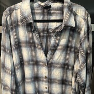 Chic plaid shirt dress with button-up design. Features a classic collar and long sleeves. Ideal for casual wear. Size 4XL from torrid. Has pockets!