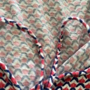 Good condition top with blues white and white. Dangly strings that have a knot. The wrapped blue strings have a different silver wrap as shown.