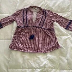 Boden 3/4 length sleeve embellished boho style peasant top 8R