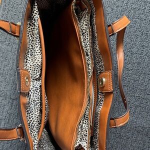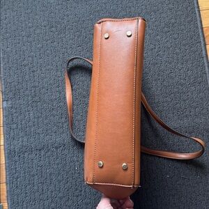 Chic tan leather tote. Spacious interior. Perfect for daily use.