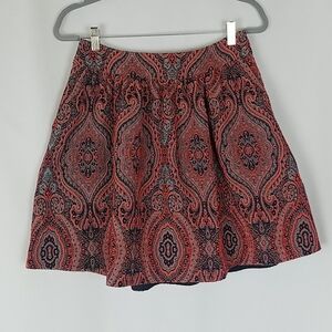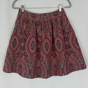 Anthropologie Moulinette Soeurs women S Karachi A-Line Jacquard skirt above knee, pockets, ornate textured design, hidden side zip, no stretch to the fabric or waist. 65% polyester, 15% acrylic, 14% nylon 6% wool. Small pull in front see photos