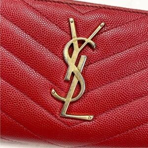 Elevate your style with this stunning red quilted leather wallet from Yves Saint Laurent. Perfect for organizing your essentials with elegance.