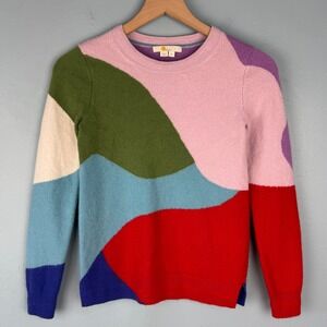 Boden Abstract Colorblock Crewneck Sweater Women's XS Colorful 100% Cashmere
