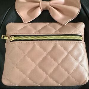 Disney mini-backpack featuring ears and a bow. The top and front pocket feature zipper closure.