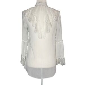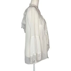 Alice + Olivia Jaden Lace-Paneled Gauze Tunic Top Sheer White Blouse Women's XS