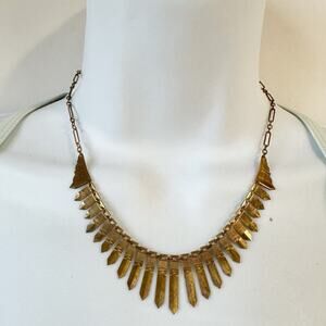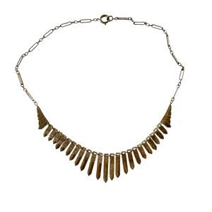 Gold brass tone chain, necklace, art deco collar, 16 inch total length there is tarnishing no brand bohemian