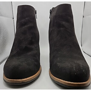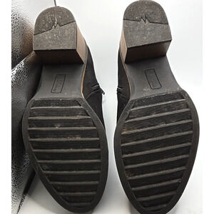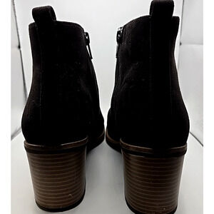 EUC White Mountain Faux Suede Ankle Bootie Block Stack Wood Heel Zip Black 8.5