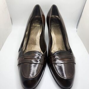Stuart Weitzman Womens Size 39 Leather Brown Pumps Penny Loafer Career Vintage