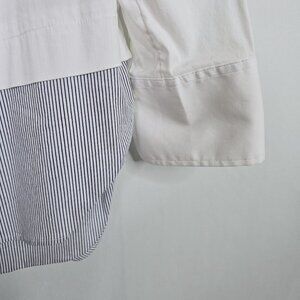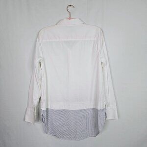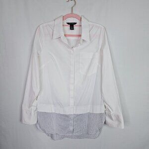 WHITE HOUSE BLACK MARKET Button Up Down Shirt WHITE w NAVY BLUE size 8 Lagenlook