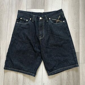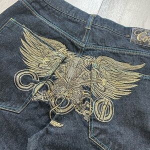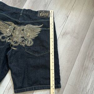 COOGI Men's Dark Jean Shorts Baggy with Gold Wing Design Embroidery Size 38