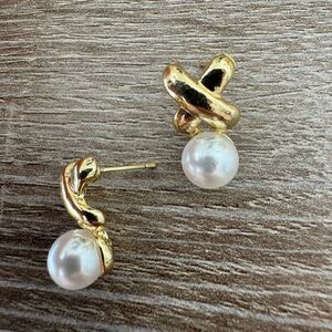 Vintage style pearl detail earrings in gold hardware
