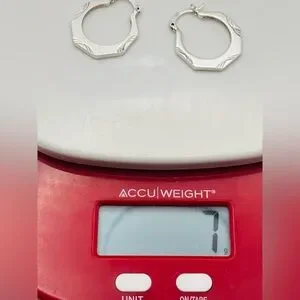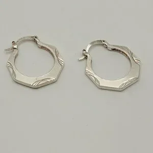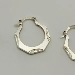 Vintage Sterling Silver Octagon Hoop Earrings – Engraved Leaf Design