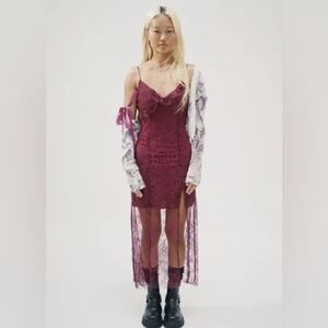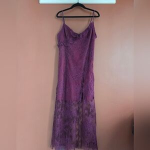 (NWOT)✨️Chic burgundy lace dress with thin straps. Ideal for evening wear. "L".