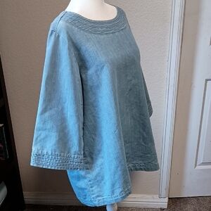 Features wide sleeves and a round neckline. Perfect for casual outings.