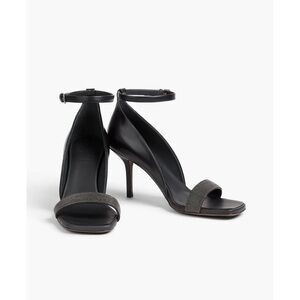Sophisticated heels with sleek black and gray design. Features stylish ankle strap.