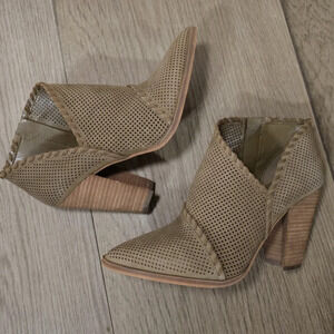 Lightly used perforated leather booties from Vince Camuto. Beautiful muted brown color that pairs well with many outfits. Versatile style can be paired with jeans, dresses or skirts. Dress up or down.