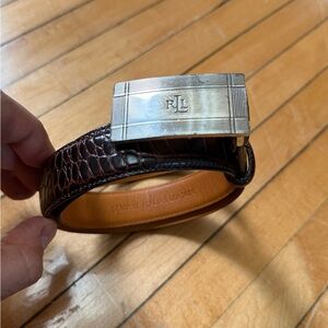 VTG Lauren Ralph Lauren Skinny Croc Embossed Brown Leather Belt Women’s Sz. S