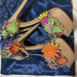 Brian Atwood Colorful Floral Embellished Heels