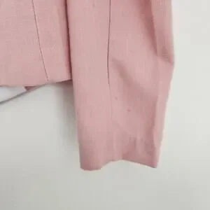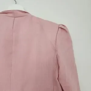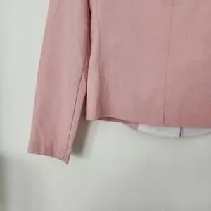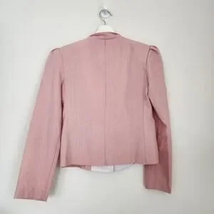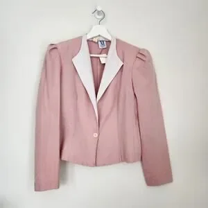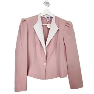 In good used vintage condition a pink blazer one button fold over collar shoulder pad suit coat in size small by M Company