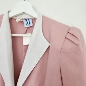 Vintage M Company Pink Blazer One Button Fold Over Collar Should Pad Suit Coat S