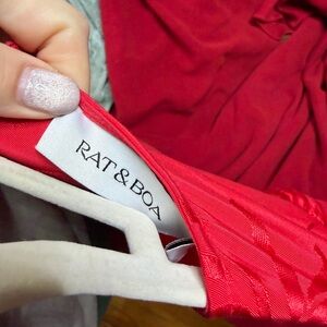 Chic scarlet dress with stylish details. Ideal for bold fashion statements.