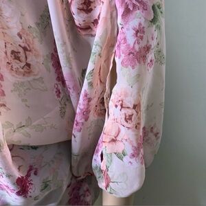 Pink Floral Cold Shoulder Top Crochet Back Batwing Blouse. Roughly 20” pit to pit 23” long