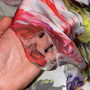 Bold colors and an ornate print make this Jay Godfrey dress stand out from the rest. Plus, it has an airy ruffled hem that will elegantly move with every step you take. Try it with the Gold Circle Stretch Bracelet by Slate & Willow.