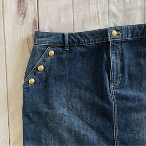 Talbots Plus Petite Denim Skirt Women’s 16 Blue Button Sailor Chic Office Mini