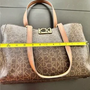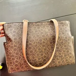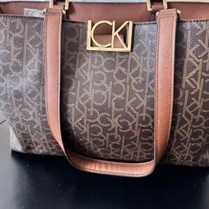 Stylish Calvin Klein tote with signature logo design. Features rich brown tones and elegant gold accents. Ideal for daily use. Good condition. No tear, No flaws