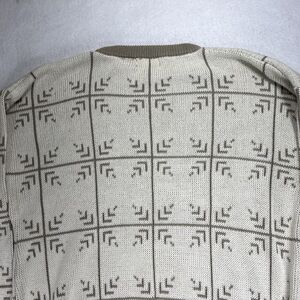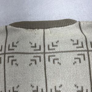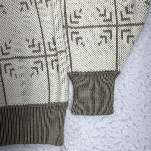 Great condition vintage St. Stephen Collection Maison Blanche long sleeve crewneck pullover sweater in a men's size large in a beige color with a striped/geometric pattern. Made in Korea.
