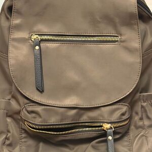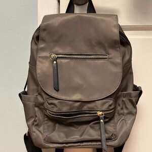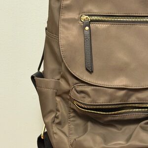 Stylish army green / brown backpack with gold zippers. Ideal for everyday use. Fashionable and practical.