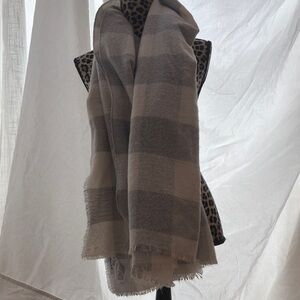 Elegant Gray and Cream Checkered Blanket Scarf