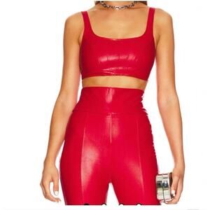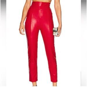Amanda Uprichard Red Faux Leather Leggings High Waisted Pants Baddie Party Sexy