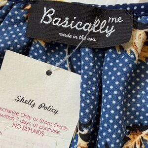 NWOT Navy Off-Shoulder Top Ruffled Angel Sleeves with Yellow Feather Print Top